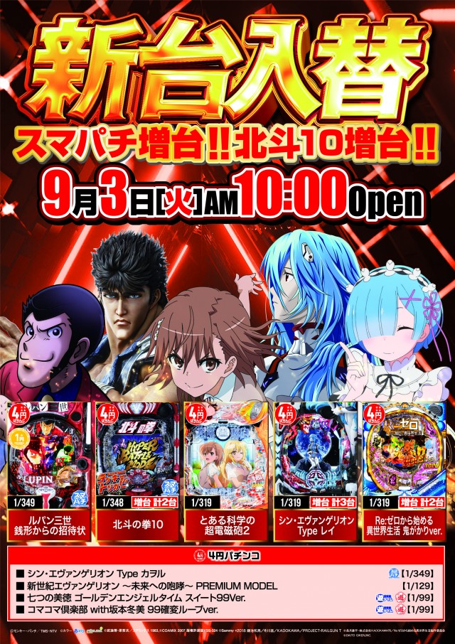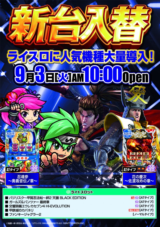 9/5(木)10時開店 イルサ自慢のジャグラー40台設置!