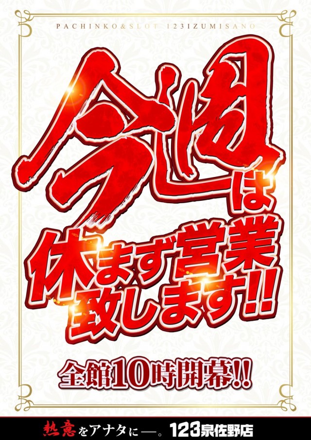 今週は休まないっ! 全館10時OPEN!!