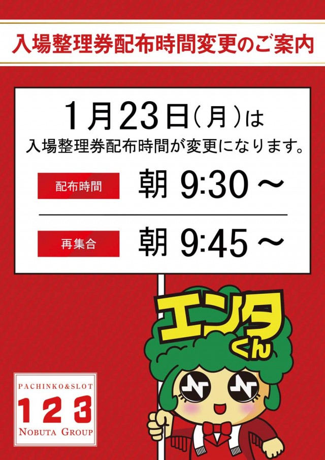1月23日新台解禁!!全館10時開幕整理券配布9:30