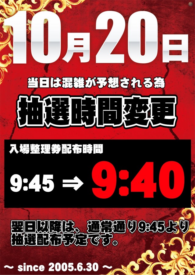 ★9/30★9:40より抽選開始!/詳細は店舗HPへ