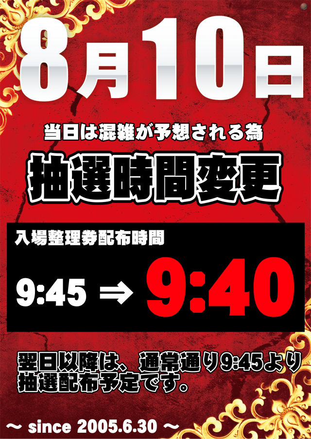 8/10(土) 抽選時間9:40(予定)