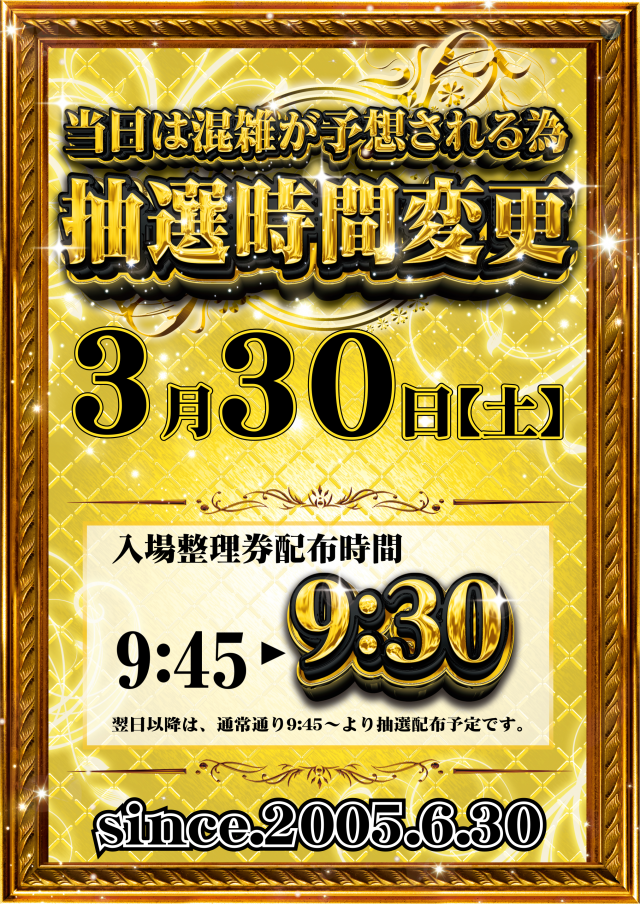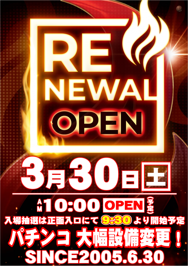 本日、リニューアルオープン(予定)パチンコ大幅設備変更!