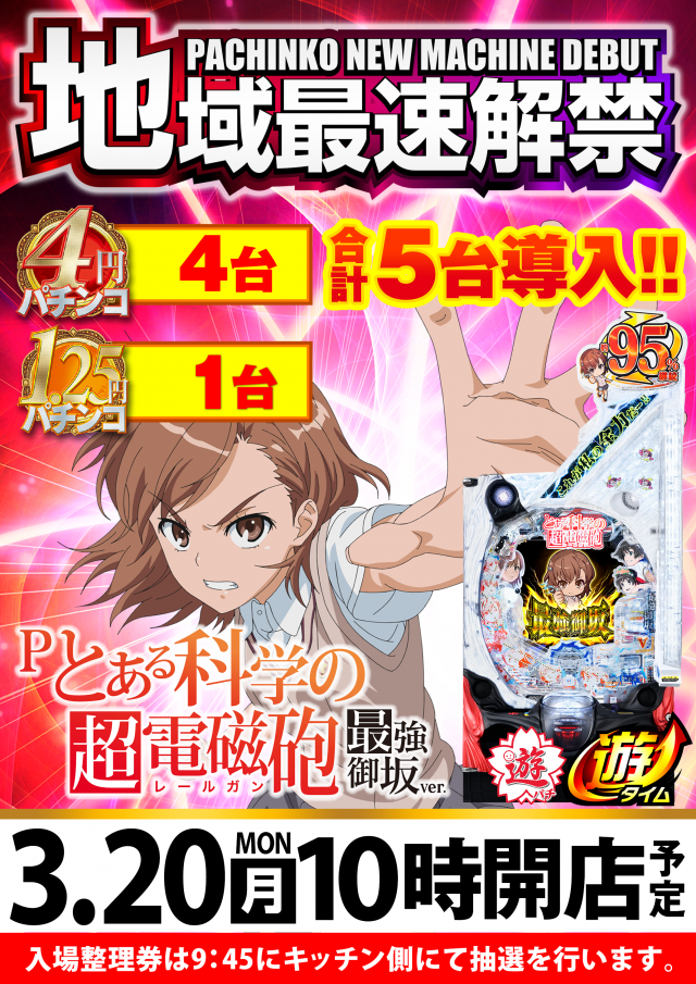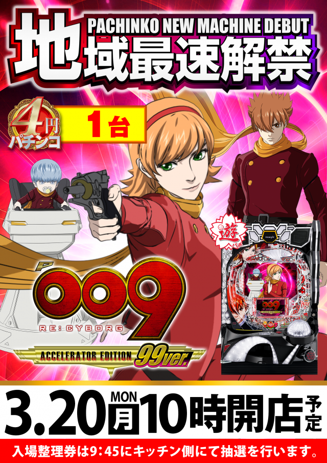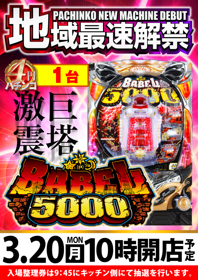 新台オープン時のみ朝9時45分より並び替え入場整理券を配布 |
