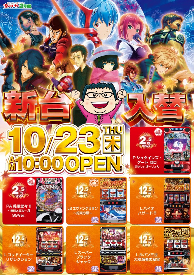 新台入替パチンコ2機種、スマスロ4機種導入。