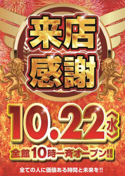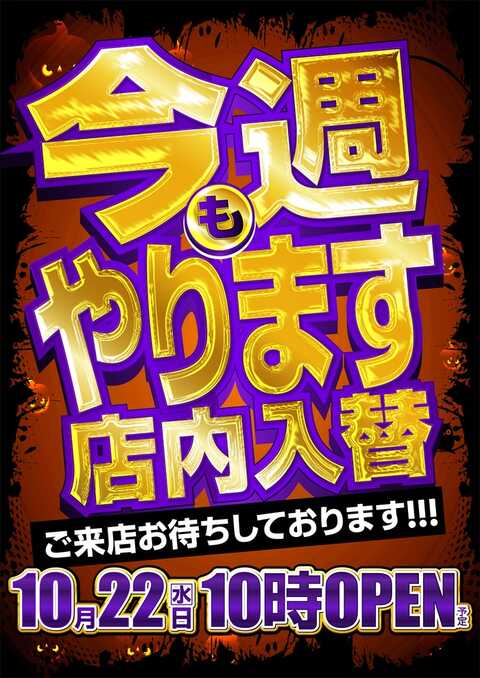 こんばんは!アミューズ富田林店です明日のご案内ですまだまだやります!店内入替第3弾10月22日(水)アミューズグループ全店一斉10時OPEN!