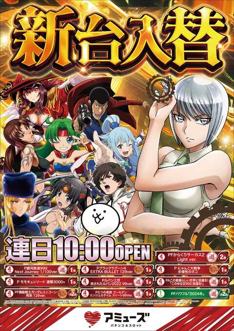 おはようございます!アミューズ富田林店です本日のご案内です最新台導入済12月12日(金)全てのお客様に来店感謝アミューズグループ全店一斉10時OPEN!