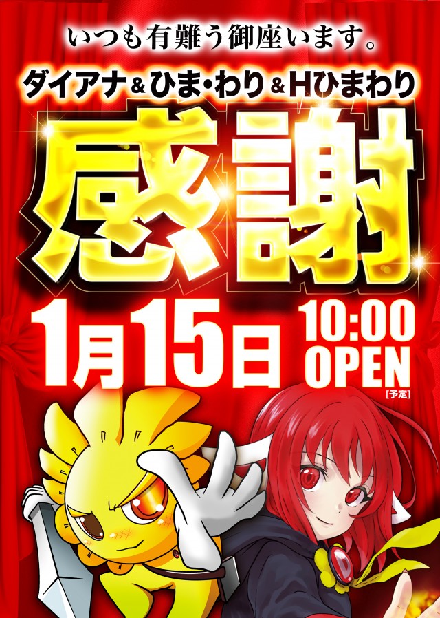 1月15日ダイアナ&ひま・わり☆全店15日10時開店☆