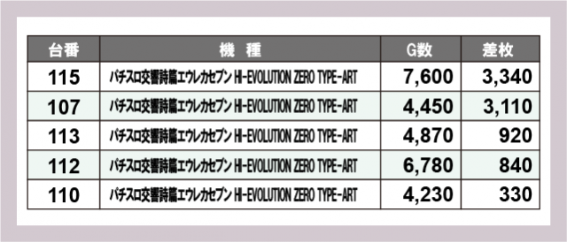 ※差枚数順に掲載しています