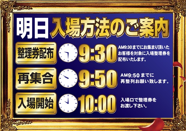 9月5日(火)新台入替初日!断固たる決意で朝10時開店!