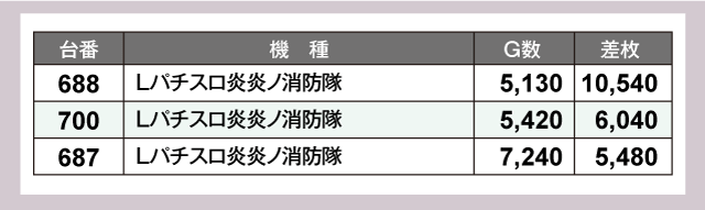 なかでも20円パチスロの『Lパチスロ炎炎ノ消防隊』が大盛況で、万枚越え1台を含む平均+7,355枚という快挙を達成していた!