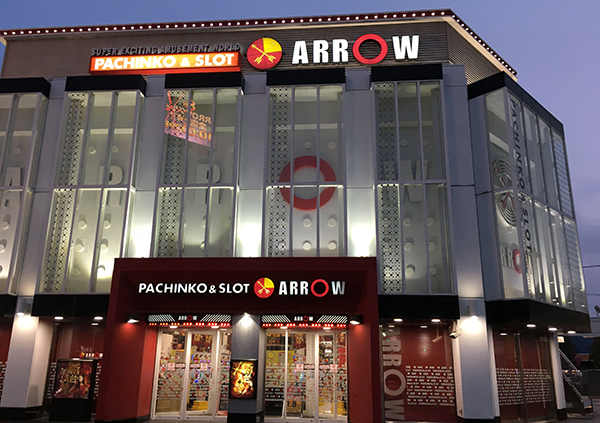 華やかな装飾や新台のポップなど、みためにもわかりやすい遊技環境が整っている「ARROW寝屋川池田店」。
