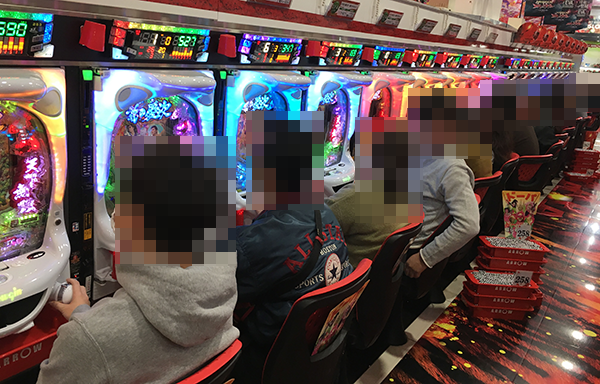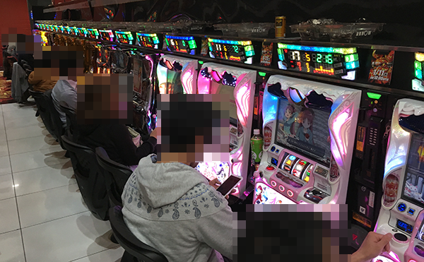 夕方ごろのパチスロの状況をうかがうと、「SLOTバジリスク〜甲賀忍法帖〜Ⅲ」や「バジリスク~甲賀忍法帖~絆」に華麗なパフォーマンスを披露しているプレイヤーを確認。