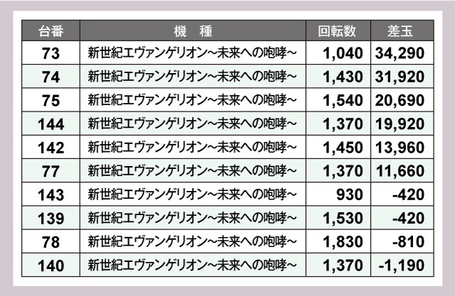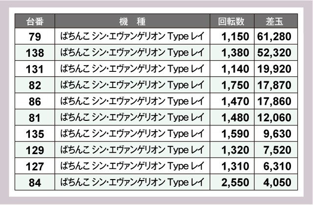 さらにこの日はパチンココーナーの注目度も高く、『ぱちんこ シン・エヴァンゲリオン Type レイ』ではなんと60,000発オーバーを確認!シマの至る所でプレイヤーの見事な活躍を目にしている。