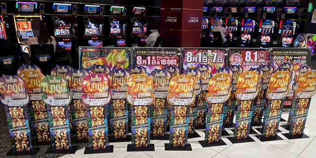 「ARROW松原店」で実施された久しぶりの「ARROW THE REAL取材」。この日、ひときわ華やかなムードに包まれていたのはスロットコーナーだ。
