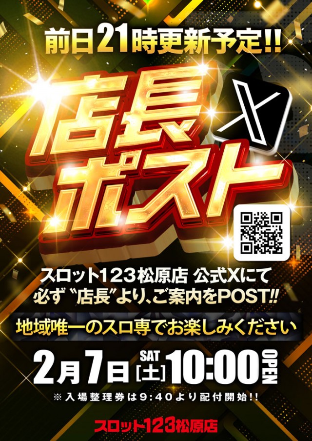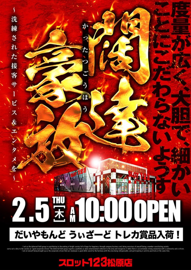 2/6(金)10時開幕★123エリア松原★新台入替完了★