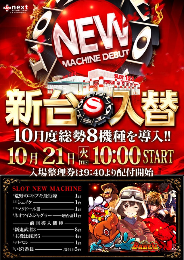 10/28(火)10時開幕!★地域唯一スロ専★新台入替完了★