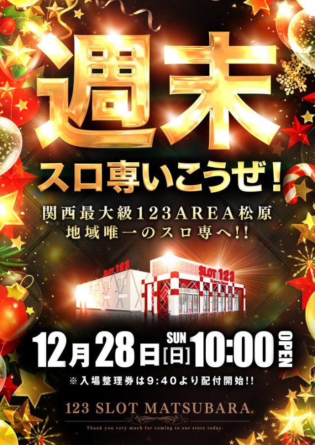 30(火)10時開幕!★123エリア松原★地域唯一スロ専へ★