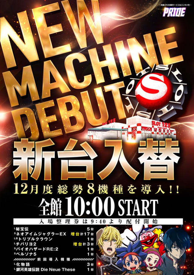 12/22(日)10時開店★123エリア松原大型新台入替完了
