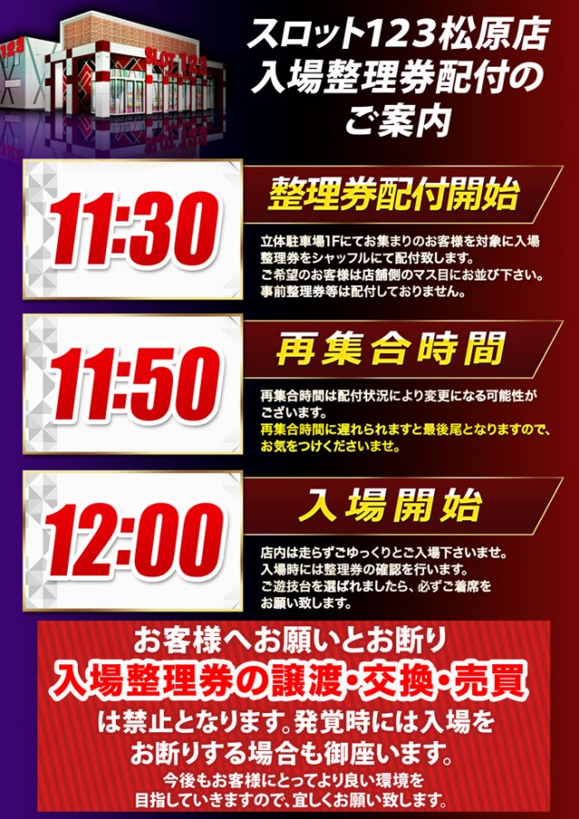 朝9時40分よりスロット123側立体駐車場1階にて入場整理券配付開始 |