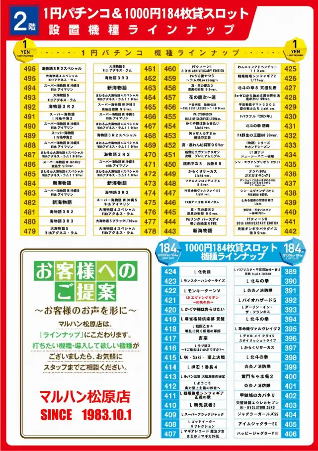 マルハン松原店の機種情報