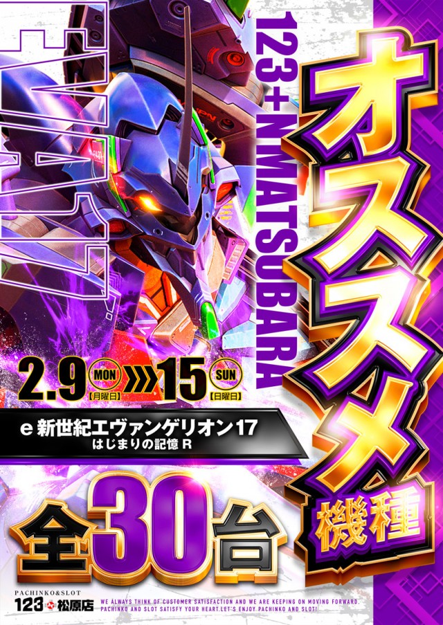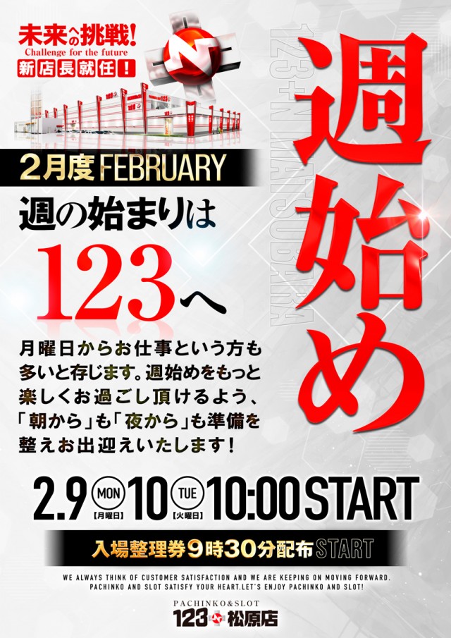 2月7日(土)123+N松原【PRIDE】全館10時開幕!