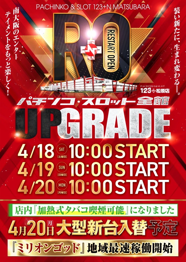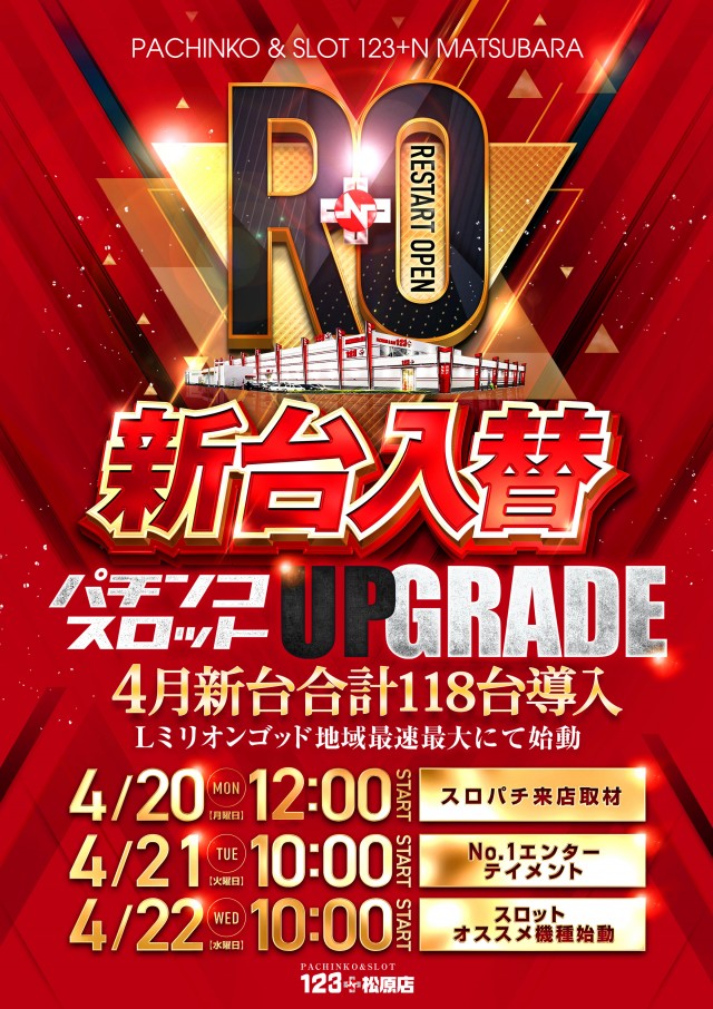 4月22日(水) 新台入替UPGRADE完了 10時開店