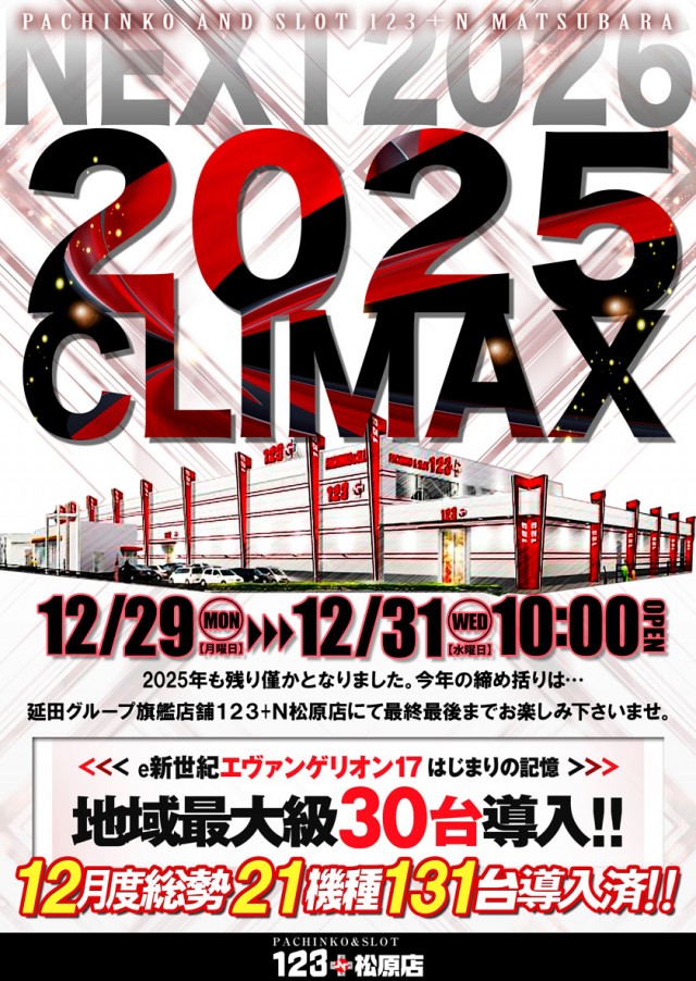 12/29(月)2025 ~CLIMAX~全館10時開店!!
