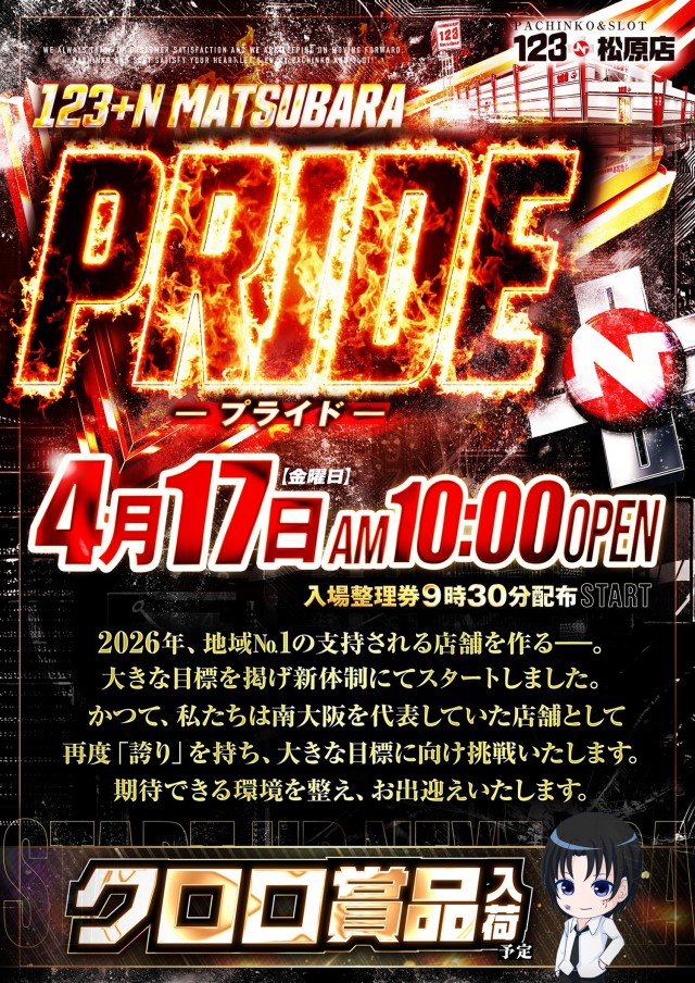 4月17日(金)123+N松原【PRIDE】全館10時開幕!