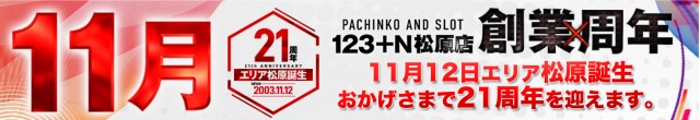 123松原エリアが贈る大型新台入替15機種92台導入■11月6日[水]■全館10時一斉START