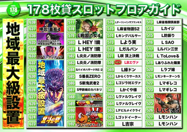 マルハン大東店の機種情報