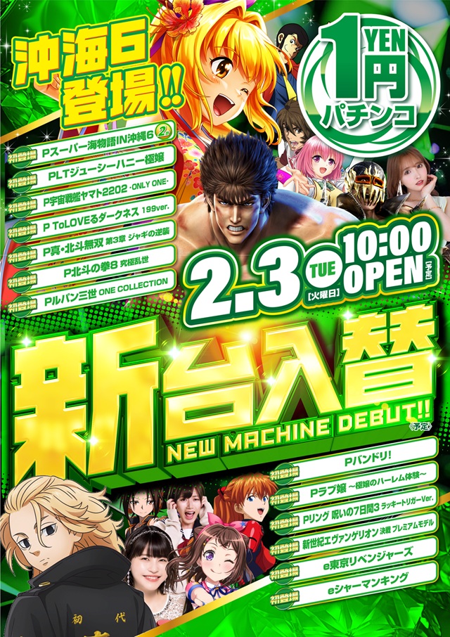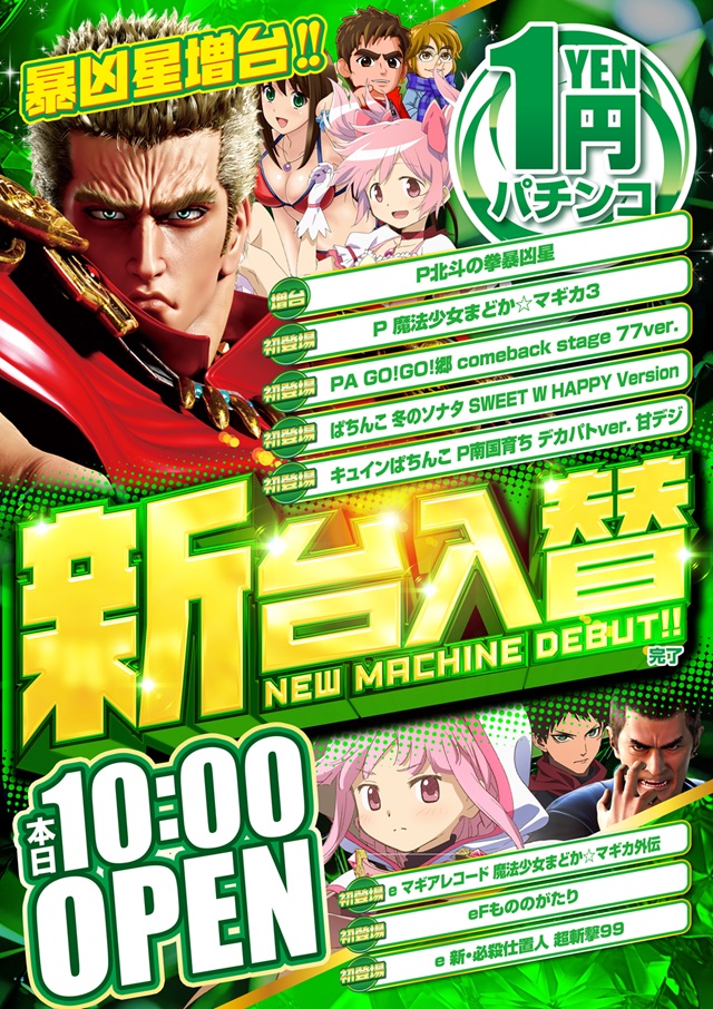 1月29日☆感謝☆新台導入完了!AM10時OPEN!
