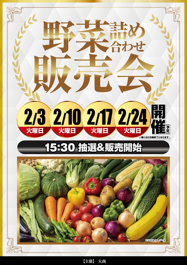 2月10日【野菜販売会開催予定】AM10時OPEN!