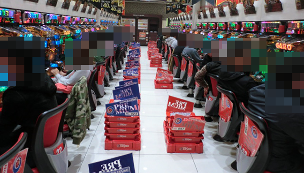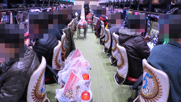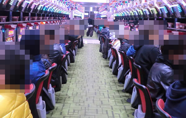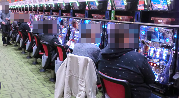 20円パチスロにもプレイヤーの姿は多く、「パチスロ北斗の拳 強敵」や「バジリスク~甲賀忍法帖~絆」は、朝と同様に高稼働をキープ。