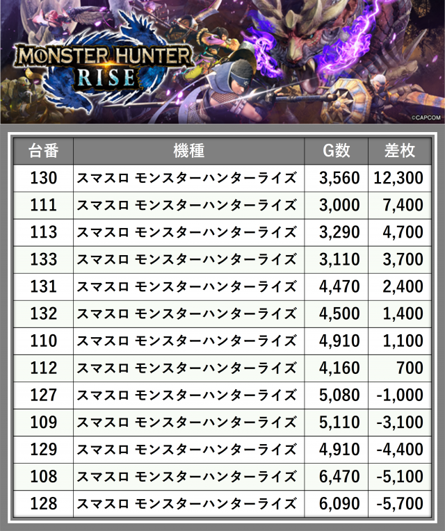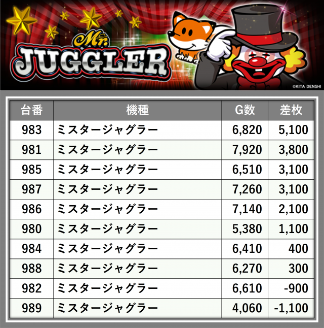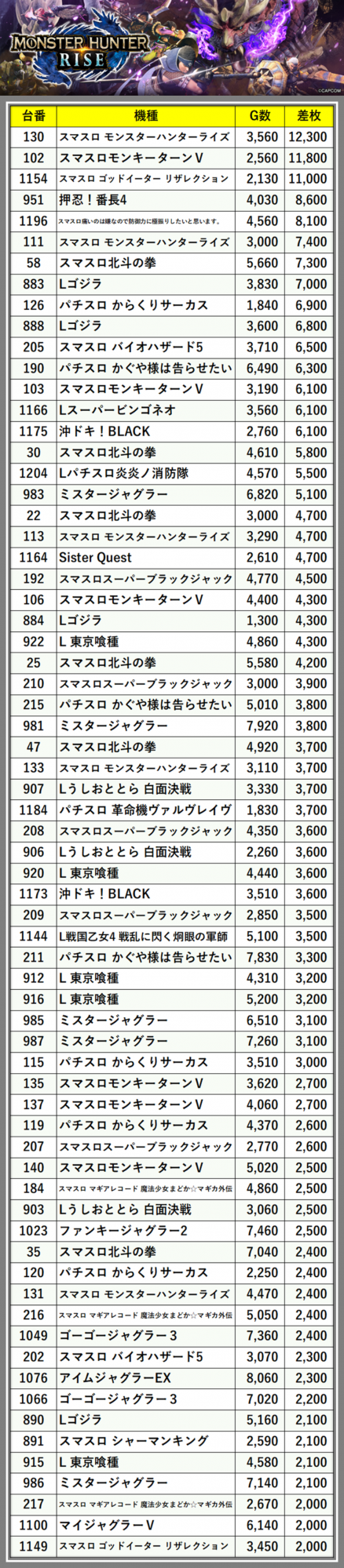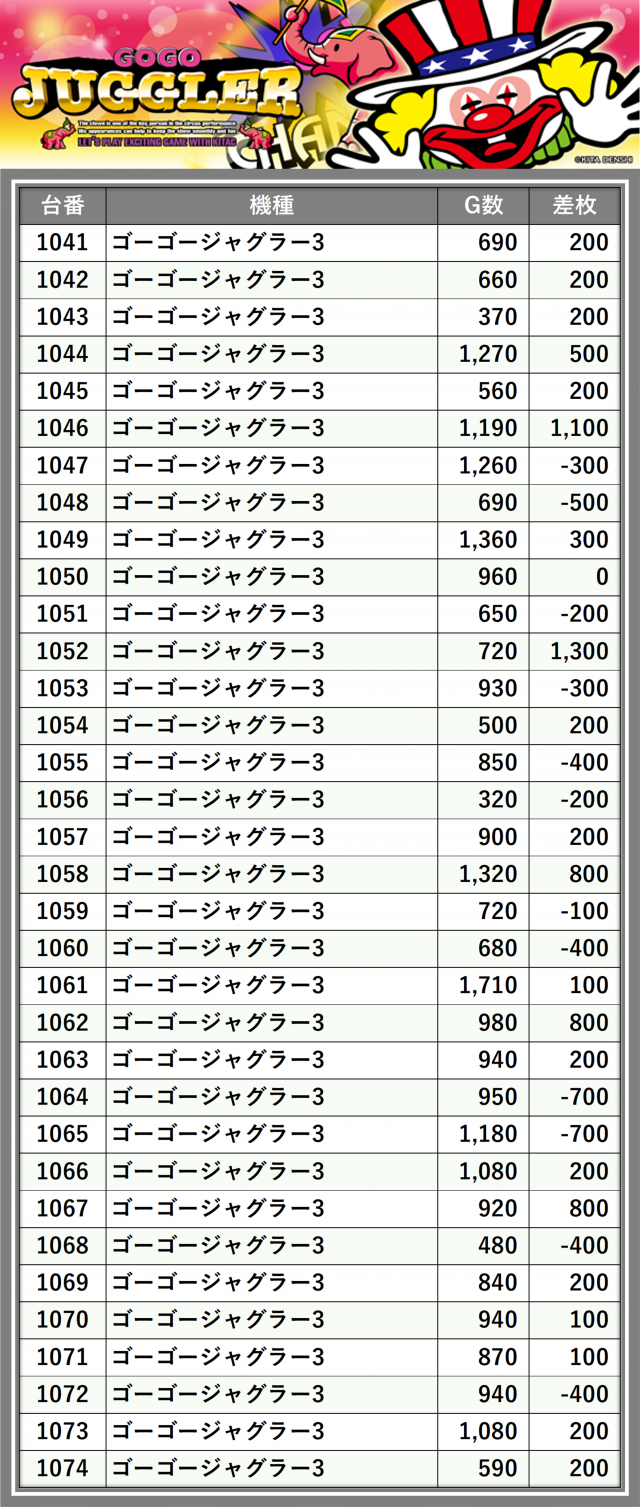 厳選された取材対象機種をはじめ、その他スロット全体から好記録が飛び出した!プレイヤーが楽しんだ1日を下記データにて振り返ってみて欲しい。