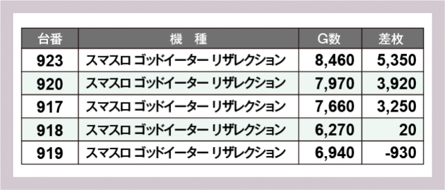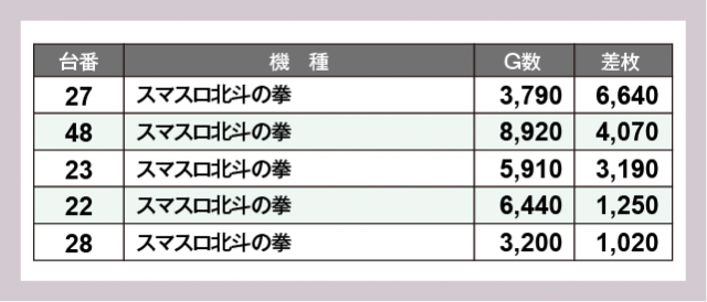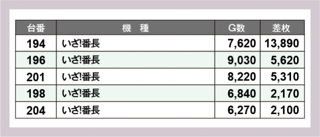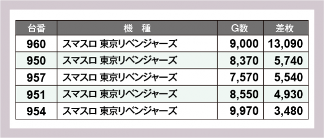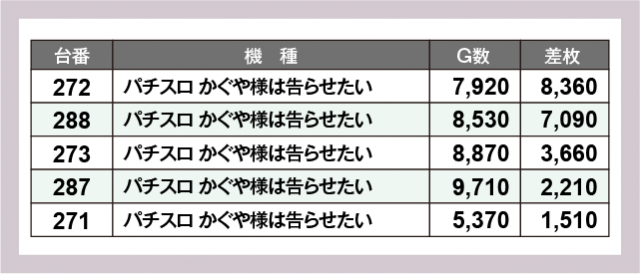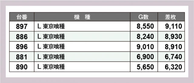 ※差枚数順に掲載しています