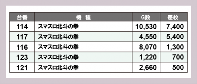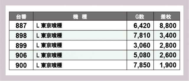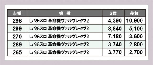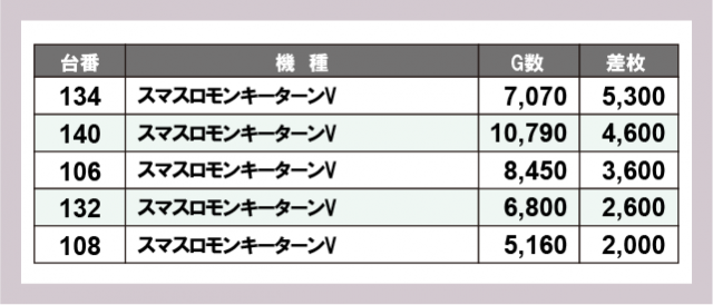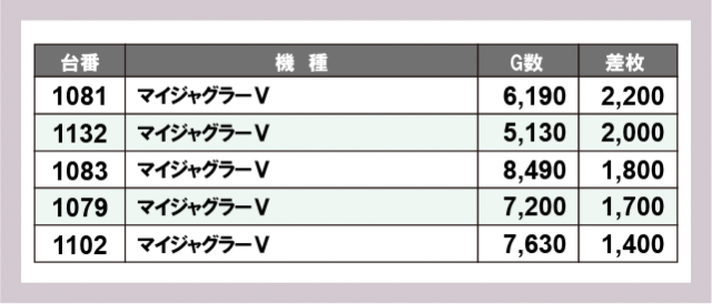 ※差枚数順に掲載しています