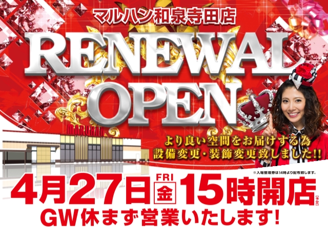 本日4月27日(金)リニューアルオープン!15時開店(予定)