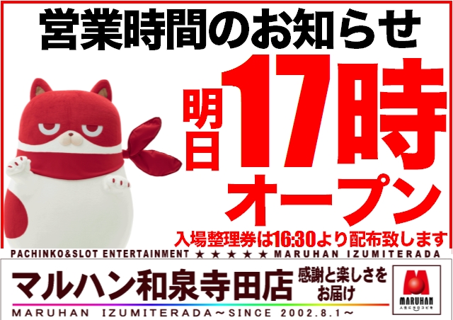 明日4月17日(火)よっしゃーマルハン!朝10時