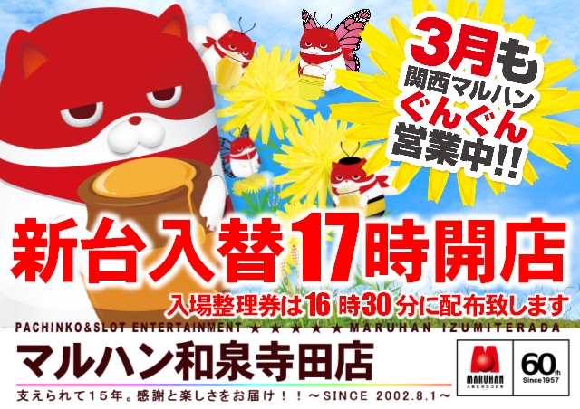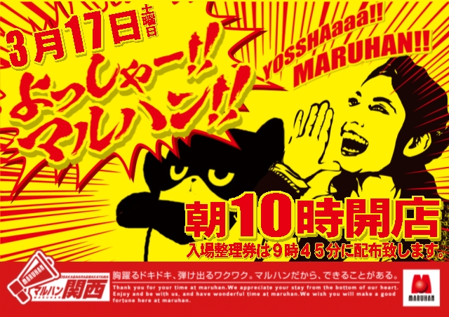 明日3月17日(土)よっしゃーマルハン!朝10時