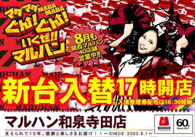 明日マルハン和泉寺田店新台入替(予定)17時開店!