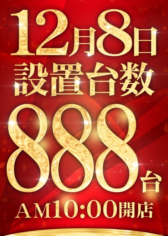 明日8日(木)総設置台数888台♪全館10:00 OPEN