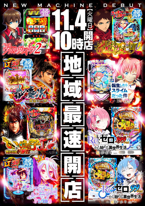 本日4日(火)最新機種【最速解禁】×マザーブロス♪10時開店