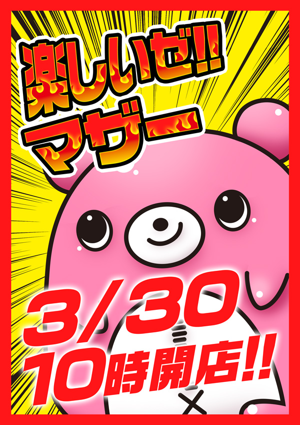 明日3日(金) 新台【導入】済み×マザーブロス‼10時開店♪