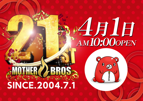 明日4月4日(土)新台【導入】済み×マザーブロス‼10時開店