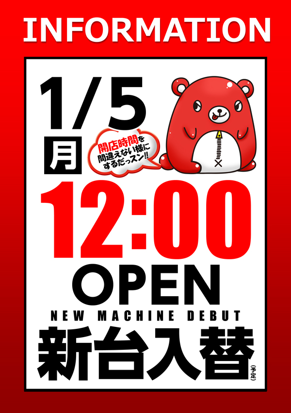 明日5日(月) 新台入替【初日】×マザーブロス!12時開店♪