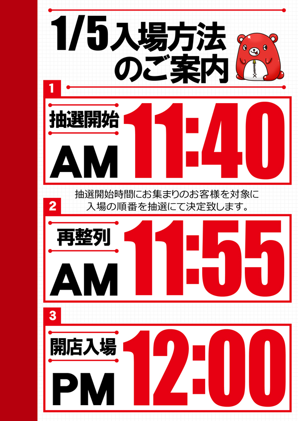 本日5日(月) 新台入替【初日】×マザーブロス‼12時開店♪