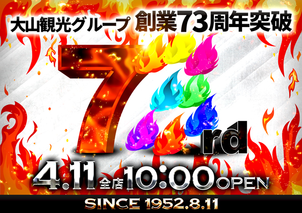 本日11日(土) 大山観光GP創業73周年突破‼10時開店♪