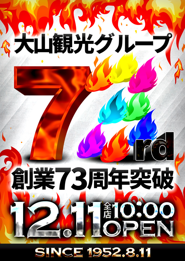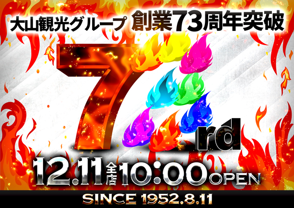 本日11日(木) 大山観光GP創業73周年突破‼10時開店♪