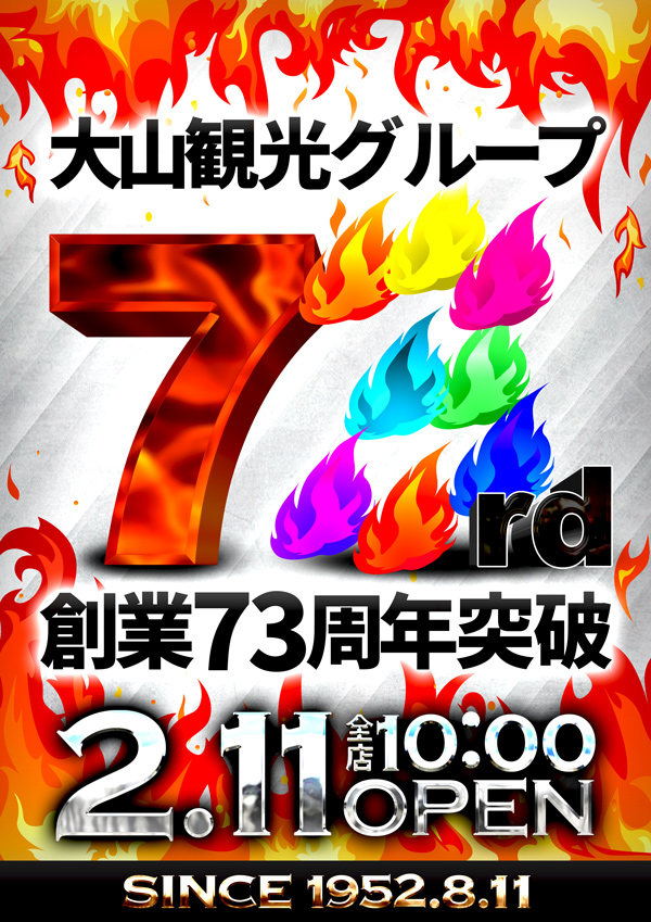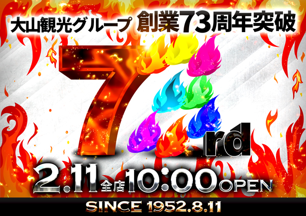 本日11日(祝) 大山観光GP創業73周年突破‼10時開店♪