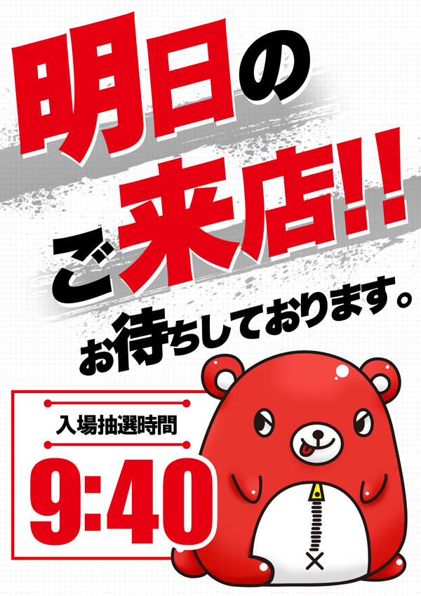 明日6日(土)最新機種導入済♪全館10:00 OPEN♪